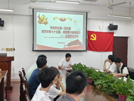 为庆祝中华人民共和国成立75周年,推动支部清廉建设,学生第一党支部于9月27日下午在07215会议室开展以“盛世华章75载 民族复兴砥砺前行”为主题的党日活动,活动由党支部书记王迎波同志主持,全体党员参会,部分入党积极分子列席。