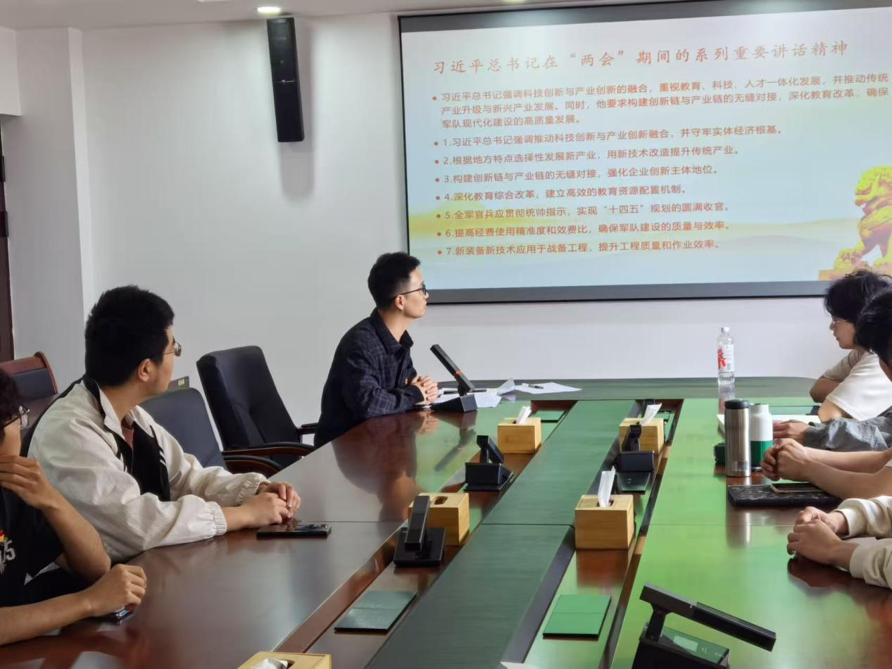 3月25日,学生第七党支部在07202会议室召开本学期首个党日活动,传达学习全国两会精神。
