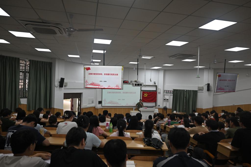 5月16日,学院党委副书记王迎波在05101教室为2025年春季学期联合分党校发展对象培训班学员讲授第一堂党课。