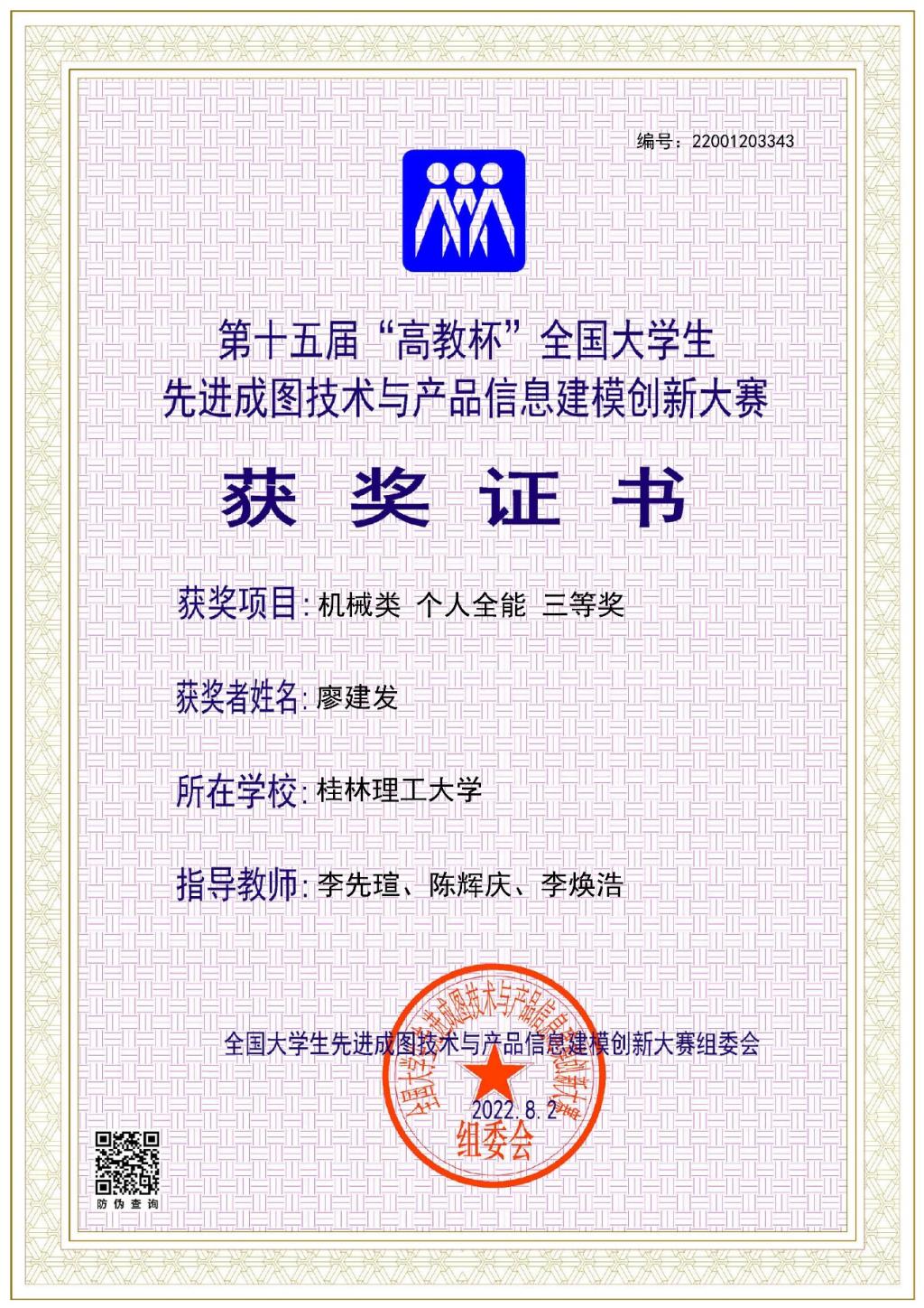 2、第十五届高教杯全国大学生先进成图技术与产品信息建模创新大赛国赛三等奖;