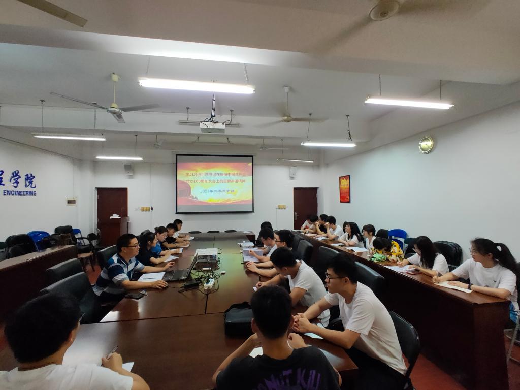 7月6日中午,学生三支部、四党支部在07215会议室联合开展了题为“学习习近平总书记“七一”重要讲话精神”的党课。此次党课主讲人是学院党委委员、副院长孙旋,支部全体党员参加了此次党课学习活动。