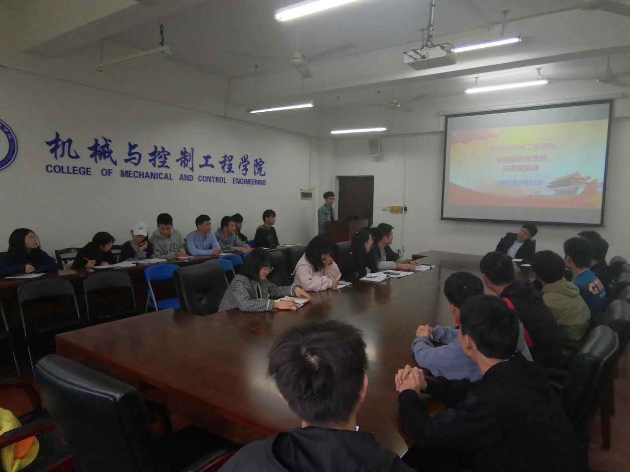 9月15日,创新基地党支部在07215会议室开展了2021年第三季度党课学习活动,党课由学院党委副书记王迎波主讲。
