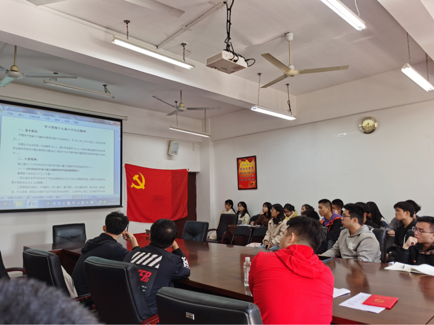 11月29日,学生第一支部组织全体学生党员同志在07215会议室学习党的十九届六中全会精神。